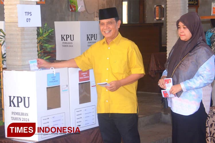 TIMES Tangsel/Calon Bupati Malang nomor urut 2, Gunawan HS, saat memberikan hak suara dalam pilkada 2024, di TPS 07, Desa Gondanglegi Wetan, Kabupaten Malang, Kamis 27/11/2024. (FOTO: Adhitya Hendra/TIMES Indonesia)